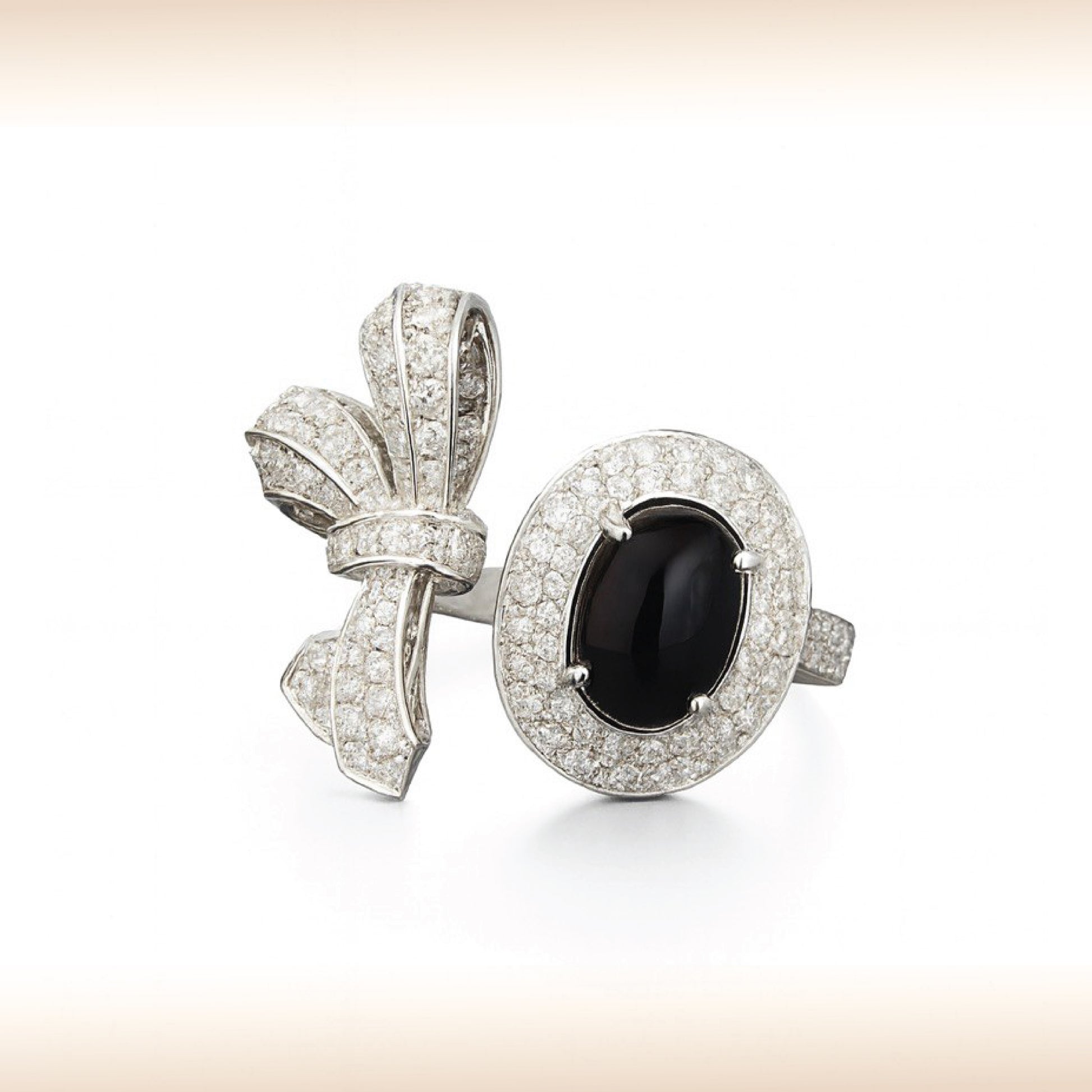 The old money ring crafted in 18k white gold, Lab diamonds and onyx stone