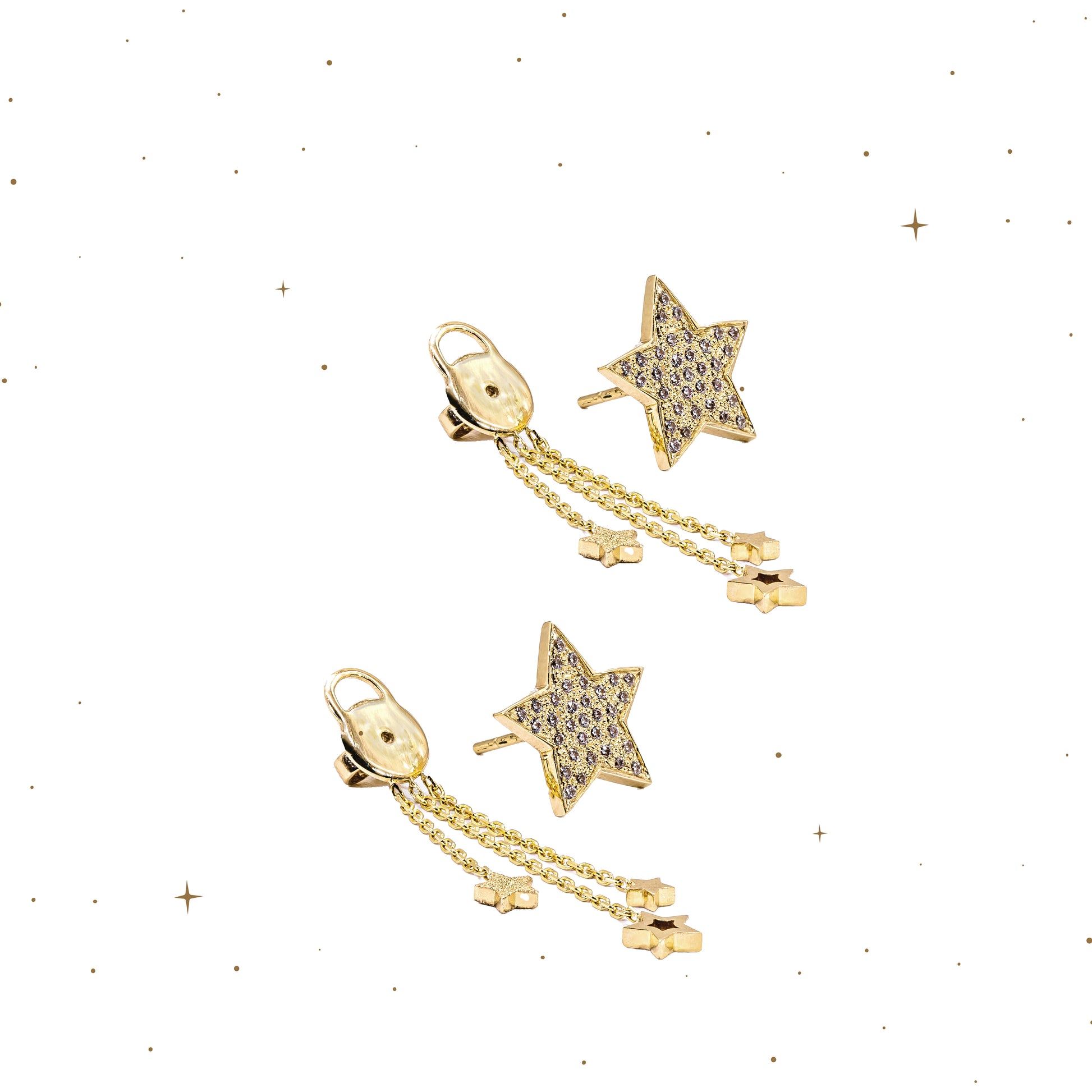 Adorn yourself with the stars earrings crafted in 18 k yellow gold and lab diamonds